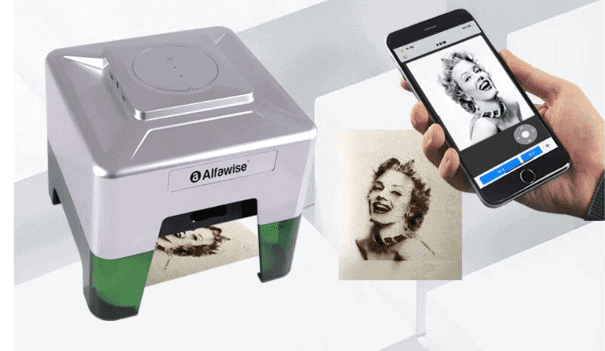 The Alfawise C50 Mini can perfectly engrave wood, ceramic, paperboard, cardboard, bamboo, leather, fruit peel, fruit core, rubber, plastic, metal surface coating. It has Bluetooth support with App for iOS and Android devices.