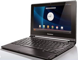Lenovo A10 Mini Touch is a laptop that runs on Android. The Lenovo A10 Mini Touch features a 10.1-inch touchscreen and full keyboard, but runs on Android 4.2.2. You can flip the screen 300 degrees to stand it on the table like when on a video chat or when watching movies.