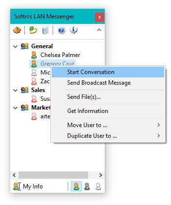 With LAN instant messenger for Windows by Softros, managers and employees can communicate with their fellow employees in an instant, without having to leave their desk.