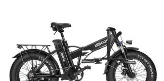 The Lesoos FatSky is a powerful folding electric bike with fat tires that make it adaptable to different terrains like snow, sand, mud, and mountain trails. It is a multipurpose eBike suitable as a commuter bike as well as with enough ruggedness to make it suitable for the off-road when you want to tackle mountains and other less than perfect terrains.