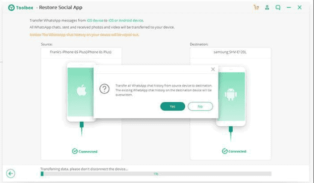 Following are the steps to transfer WhatsApp Data using iSkysoft Toolbox: