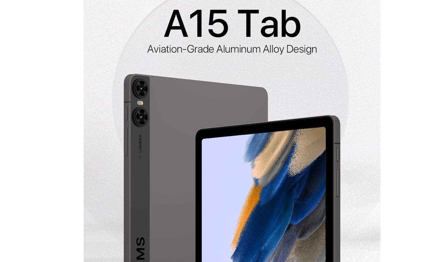 One of the standout design elements of the A15 Tab is its aviation-grade aluminum alloy finish. The matte and solid aluminum alloy finish on the back and edges not only contributes to its premium aesthetics but also enhances its overall strength and resistance to wear and tear. The tablet feels light yet sturdy in hand, thanks to the well-crafted aluminum alloy rim and straight corners.